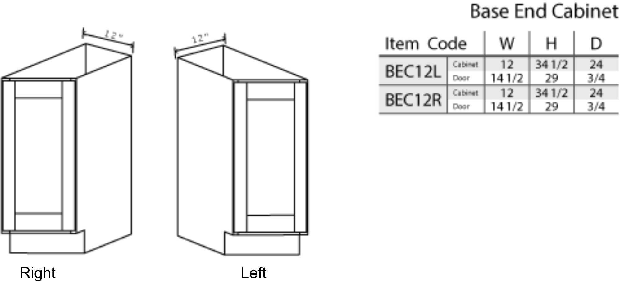Angle Base Cabinet – 12″W x 34-1/2″H x 24″D – 1D LEFT-Salt White Shaker (ALSW)