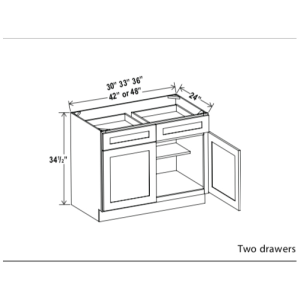 Base Cabinet – 36″W x 34-1/2″H x 24″D – 2Door, 2Drw, 1Shelves