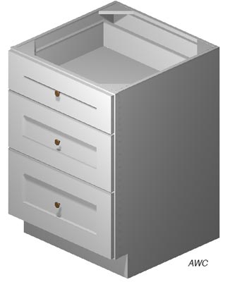 Lait Grey (AB), 3 Drawer Base- 24″W x 24″D x 34-1/2″H