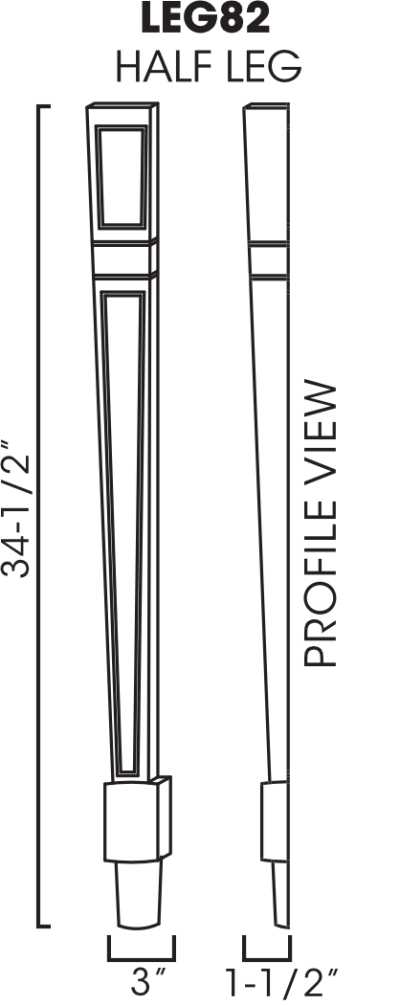 Decorative Leg 3″W x 1-1/2″D x 34-1/2″HHalf Leg