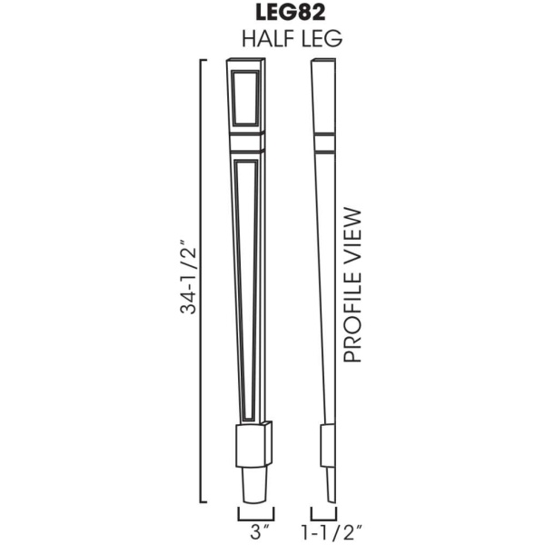 Decorative Leg 3″W x 1-1/2″D x 34-1/2″HHalf Leg