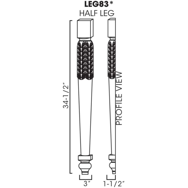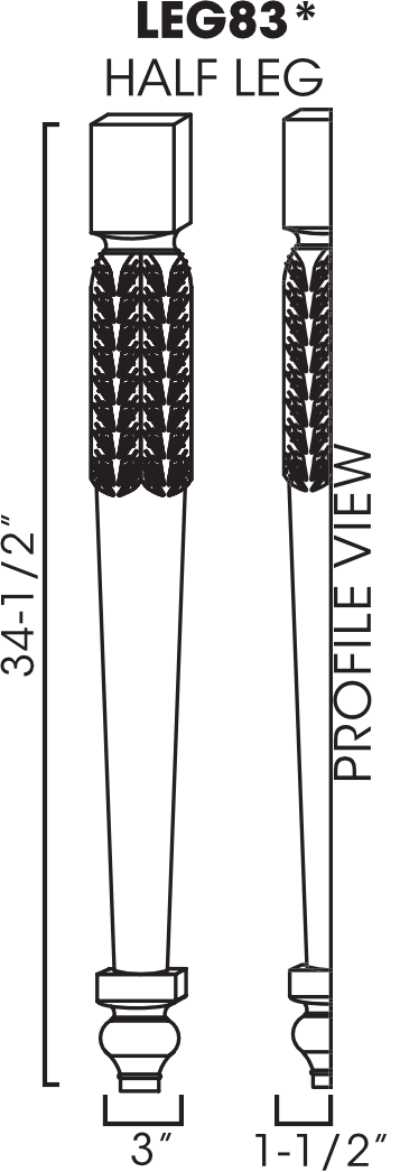 Half leg 3”w x 34-1/2”h x 1-1/2”d