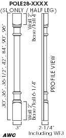POLE28-W330 = Half leg 3”w x 30”h, 36”h, 42”h x 2-1/4”d including Wall Filler 3″. SL ONLY