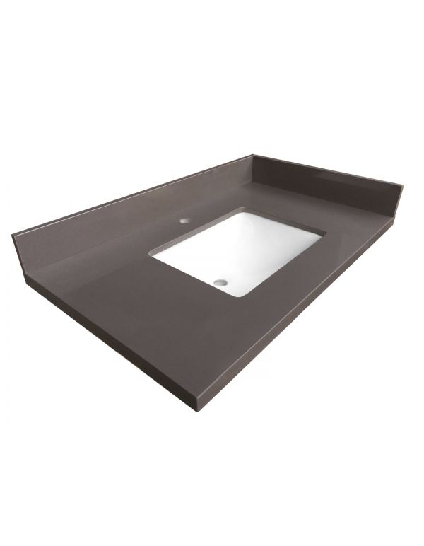 Features:Gray Quartz vanity topResists scratches and stainsNever needs sealing or polishing