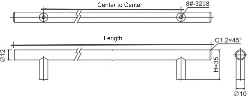 STEEL T BAR HANDLE ¢12MM,298/378MM,BN