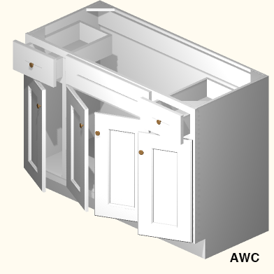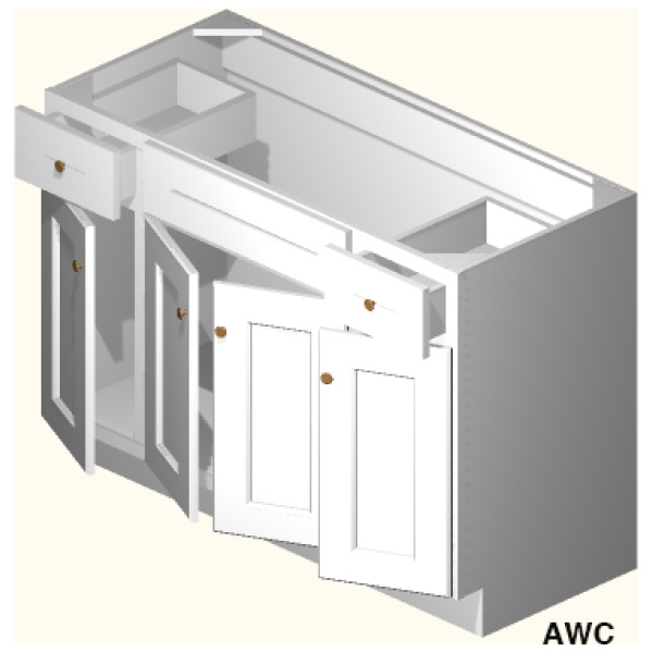 Vanity Sink Base 48″W x 21″D x 34-1/2″H – (1) B12 on Left, (1) B12 on Right, (1) SB24 in Center