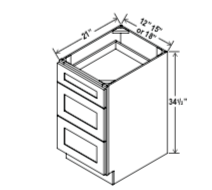 Vanity Drawer Base Cabinet – 12″W x 34 1/2″H x 21″D – 3DRW