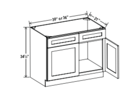 Vanity Sink Base – 36″W x 34 1/2″ x 21″D – 1Door, 2 Right DRW